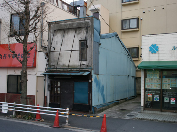 荻窪駅近くの小さな店舗。通り側だけ高く壁にした一応看板建築風の構造になっています。