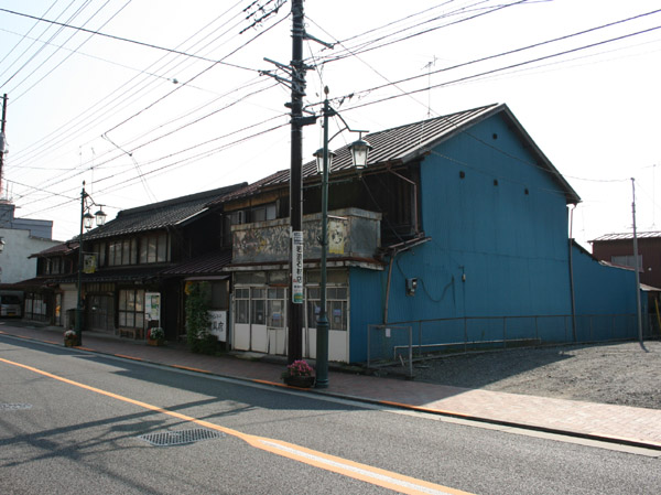 幅が大小4つの木造店舗が並んでいます。いずれも看板建築が出てくる前の、昔風の造りになっています。