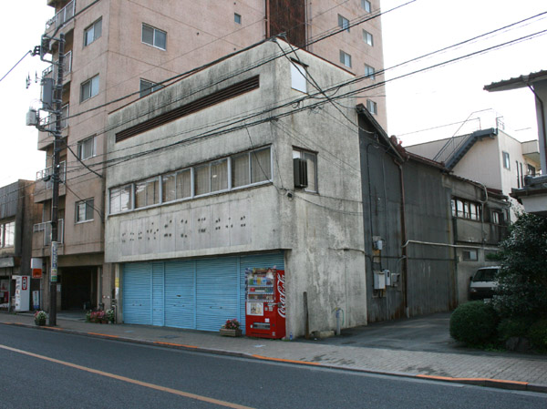 正面のコンクリート?モルタル?部分は看板構造のようですが、後方にかなり長い建物が続いています。