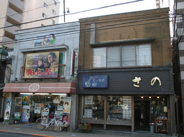 左の店舗には昭和風手描き映画看板が掲げられてます。が、店舗建築そのものの良さも見せて欲しいですね。