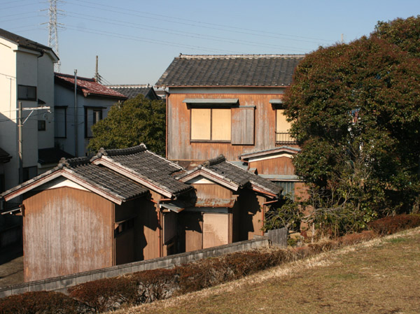 堤防下で見かけた民家です。小さい建家をいくつもくっつけたような独特の構造。