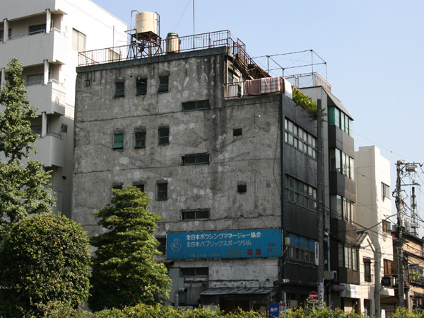 白山2丁目交差点そばにある雑居ビルです。イイ感じに古くなってます。大通り側のほうが化粧壁ではないのも面白いです。