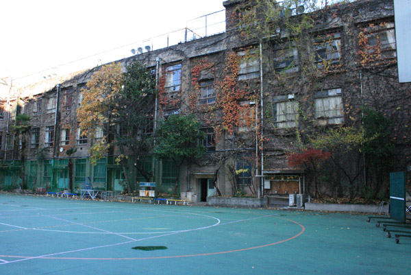 台東区役所の裏側の辺りにある小学校。と言っても廃校です。他の私立学校が借りて使ってました。