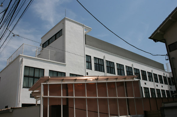 インターナショナル建築(国際建築様式)と呼ばれるデザインで、四角い機能的な学校デザインの基本です。