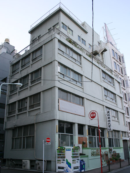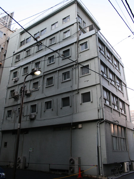 飯田橋の線路近くにある寶紙業株式會社のビル。