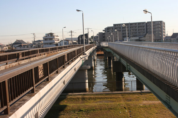 左が車道、右があとで架けられた人道橋。