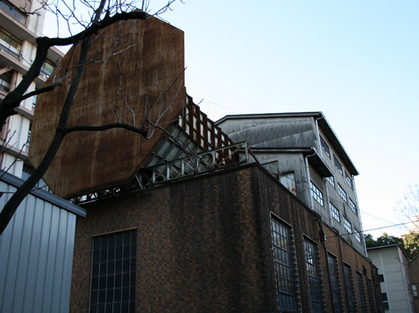 工学部の裏側にある不思議な建物。上にはなにやらアンテナのような不思議な装置も。