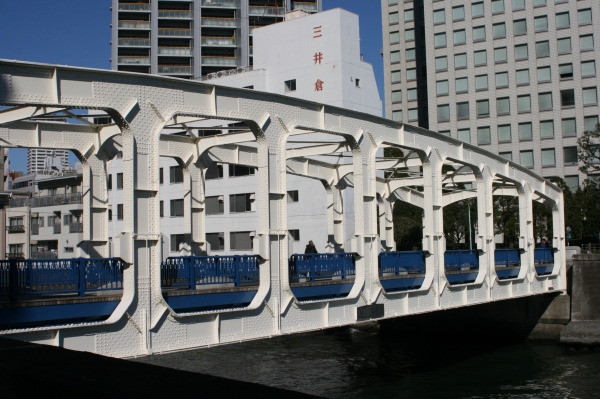 日本橋川河口にかかる橋で、関東大震災で崩壊したあと、復興時に架けられた「復興橋」の一つ。
