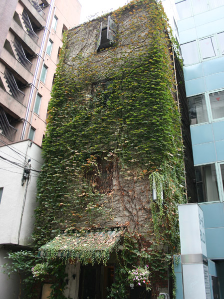 渋谷で見かけたツタの絡まったビルです。