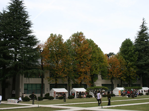 西側の校舎です。大正13年完成。緑色の独特の窓枠がはめ込まれた窓が特徴。