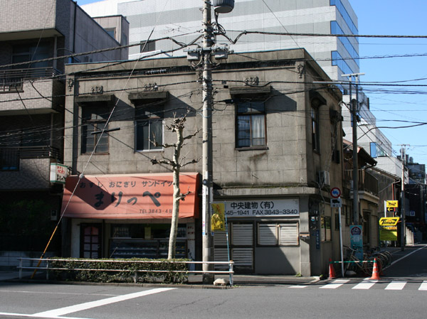 同潤会上野下アパートそばの表通り沿いに立つ商店。庇の上の彫刻など細かい特徴が。これは戦前でしょう。