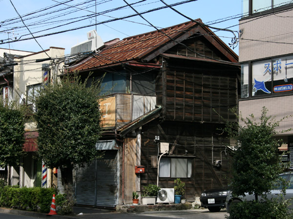 市ヶ谷の近く山伏町の通り沿いの木造建築です。