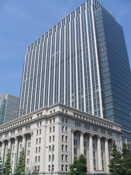 丸の内オフィス街の皇居側に面した下層が古風なビル。
