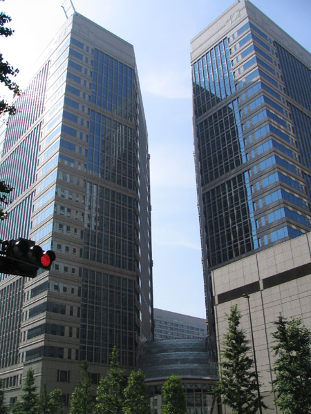 独特の角度が付いたツインタワーの高層ビル。23階建て。