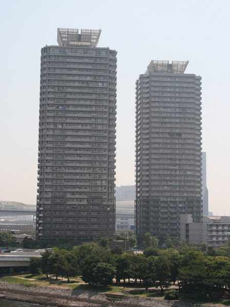 レインボーブリッジのお台場側に建つツインタワーの高層マンション。
