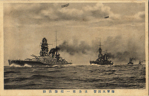 これも戦艦群。やはり煙突の形などから長門クラスのように見えます。