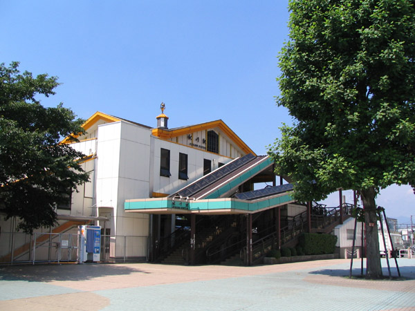 橋上駅舎で色合い・デザインもしゃれている。駅前は広々としている。