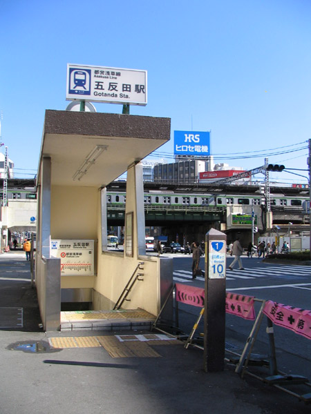 | 都営浅草線の五反田駅入り口の一つ。すごく狭い。 |