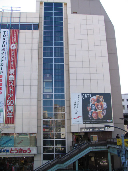 | 東急池上線五反田駅。キャッツシアターのポスターが貼ってある。 |