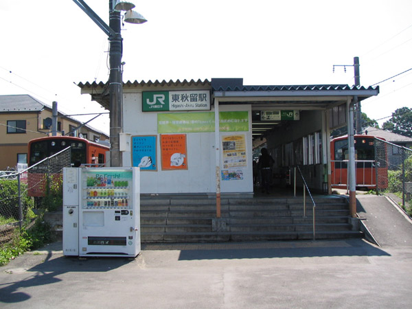 道路は前後が踏みきりになっている(写真の左右)。駅の前のこの部分だけ、道路が異常に狭い(元々は道路の上にも駅舎があったらしいのでそのためか)。