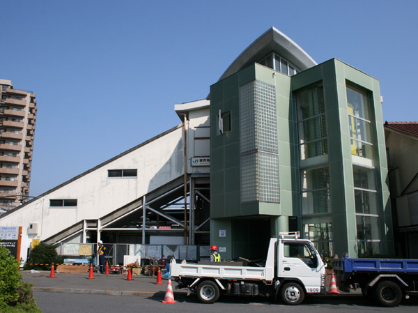 南口側。エレベータ部分が新しい。青梅市役所に近い。