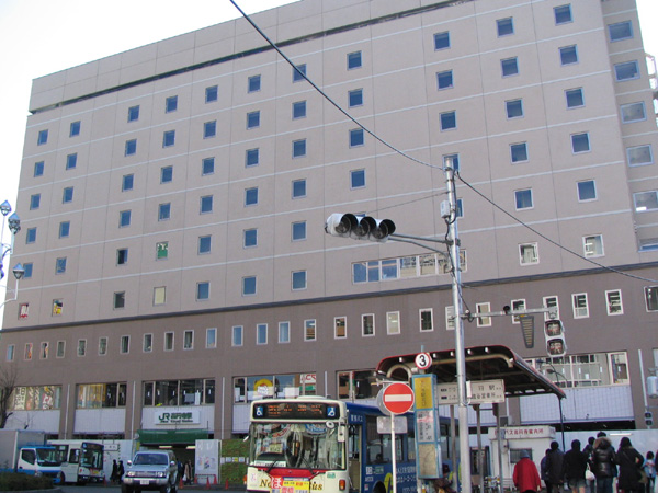 | 駅舎は、北口側がホテルメッツ(建設中)で、南側は普通の高架駅構造になっている。 |