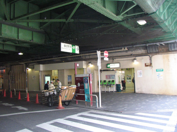 | 周辺は雑居ビルの密集する一帯で、北口を出て、高架に沿って西側北方向へ上野まで伸びるのがアメ横(アメヤ横町)。 駅の東側が宝石・貴金属関係の問屋や店が並ぶジュエリータウン。 |