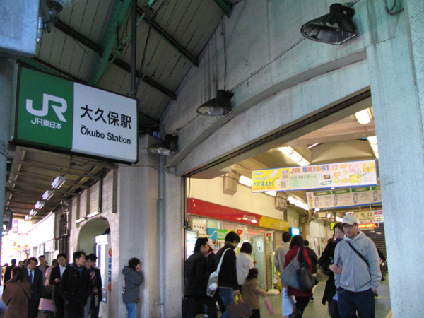 | 駅舎は高架下。 山手線の新大久保駅はすぐそば。 |