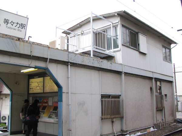 | 駅舎はホームの端にある普通の家のような建物。駅全体も最近都市部ではあまり見られない古い構造をしている。 |