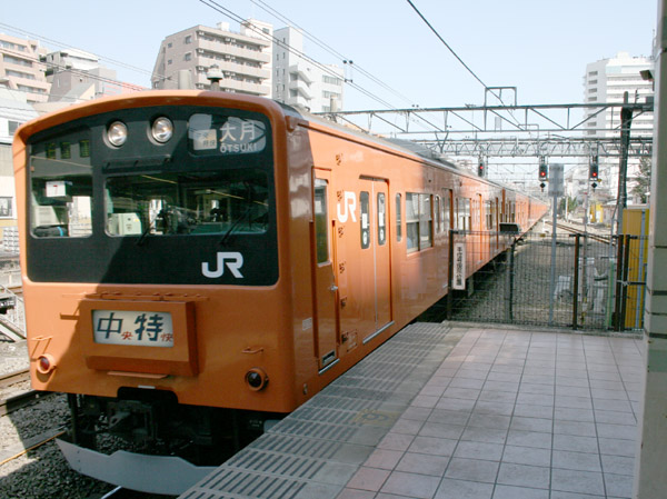 | 国分寺駅へ進入する201系の中央特快。 |
