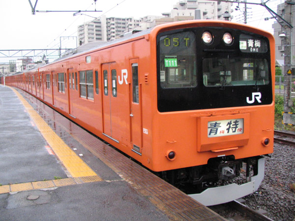 | こちらは「青梅特快」。雨のステイション(西立川駅)で。 |