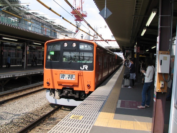 | 非常に久しぶりに見ましたが、201系の「通勤特快」。朝しか運行しない国分寺−新宿ノンストップの電車です。四ッ谷駅で。 |
