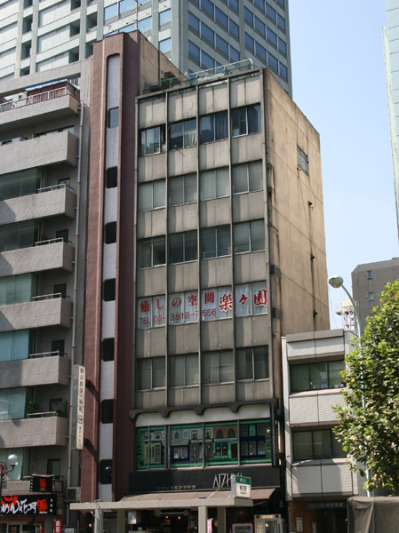 春日の地下鉄の入り口前に立つビルです。3階から上は出来た当初の感じでしょうか。