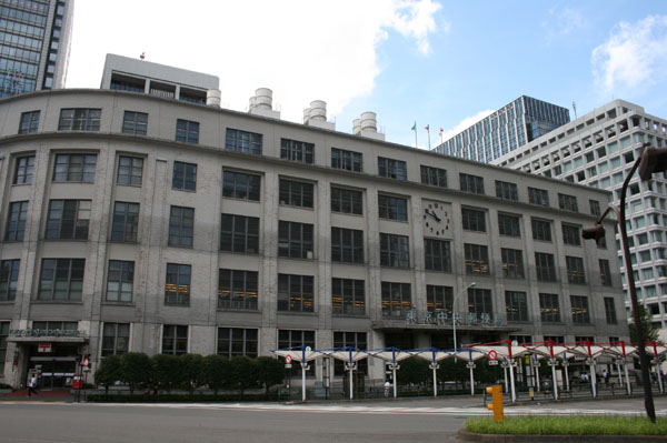 東京中央郵便局。東京駅前ロータリーの南側にある1931年完成の大きなビルです。