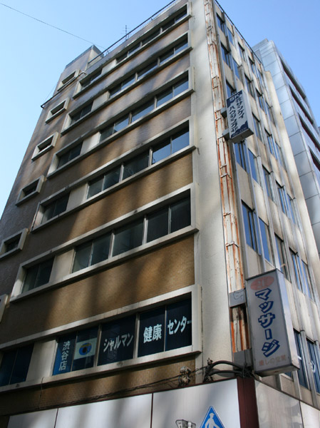 並木橋そばの交差点角に立つ昭和風ビル。解体するためか、すでに空きビルになってました。