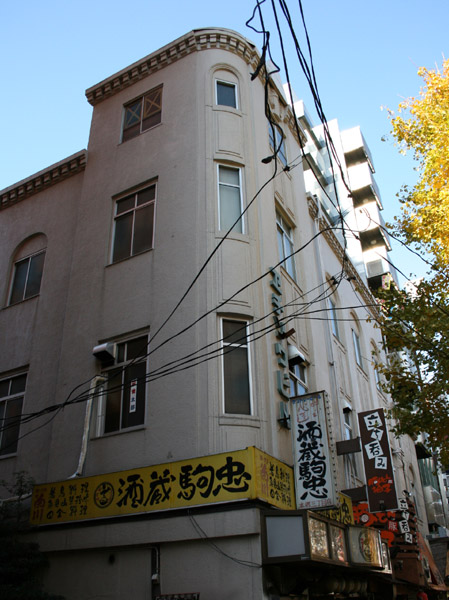 本郷二丁目の通り沿いに立つレトロチックなビル。大正13年頃の建築と言われてます。