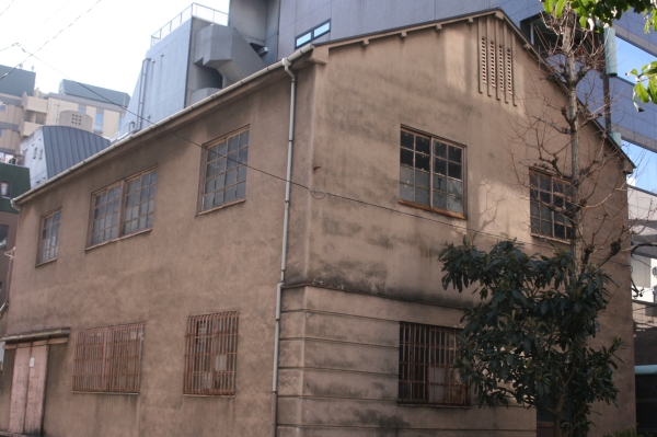富国印刷という小さな看板の付いた工場か倉庫らしき建物。