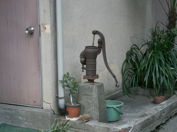 駒沢付近の住宅街で見かけた井戸の手押しポンプ。まだ残ってるのですね。