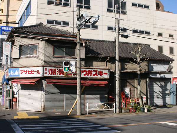 交差点沿いにある古い酒屋さん。ウ井スキーと書かれてます。ウヰスキーではないのですね。