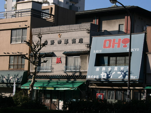 三ノ輪から浅草へ続く国際通りの道沿いで見かけた店舗。看板建築のようです。時代を感じさせます。