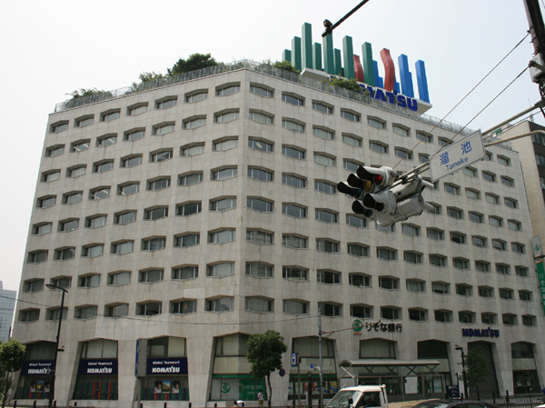 溜池の交差点角に立つ独特のデザインをしたビル。これがコマツビルです。