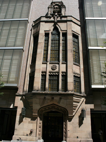 | 銀座6丁目、交詢社通りの名前にもなった歴史あるビル。1929年完成。しかし実に惜しいことに2004年に改築されてしまいました。 旧ビルのファサード(正面・顔)部分だけが、新ビルに残されてますが、全体のデザインの中で浮いていて結構違和感だらけです。 近代建築の保存は金がかかるため、政府・自治体の支援が欠かせない。 しかし、文化庁も東京都も石原都知事も非常に冷淡。このビルの改築は、その象徴かも知れません。 |