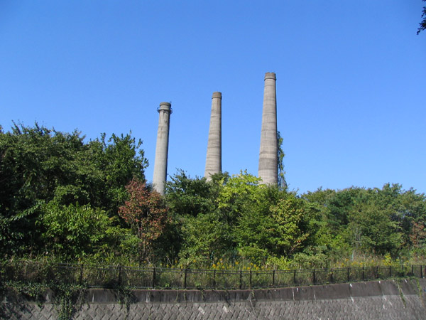 これは国営昭和記念公園側から見た煙突。ユーミンの歌にも登場します。