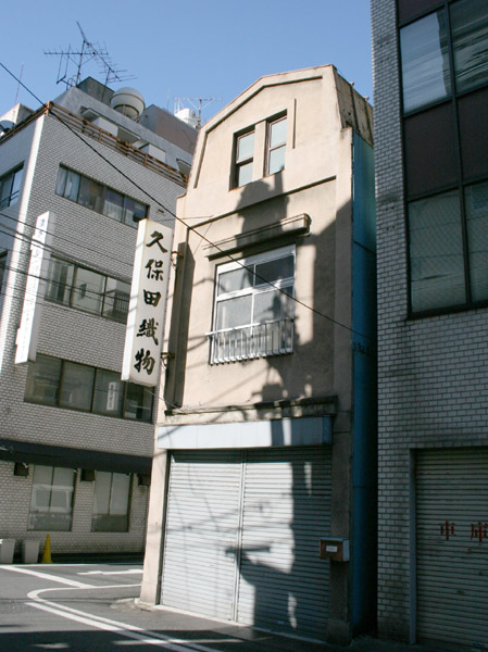 神田の住宅街にある3階建てのビル。久保田織物さんです。
