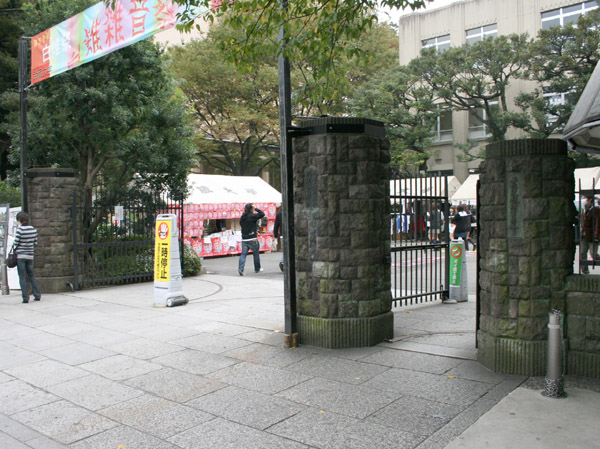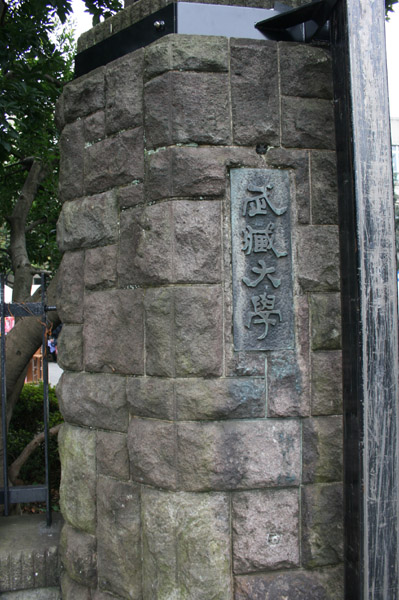 旧制武蔵高等学校の正門です。石造りの門柱が並んでます。