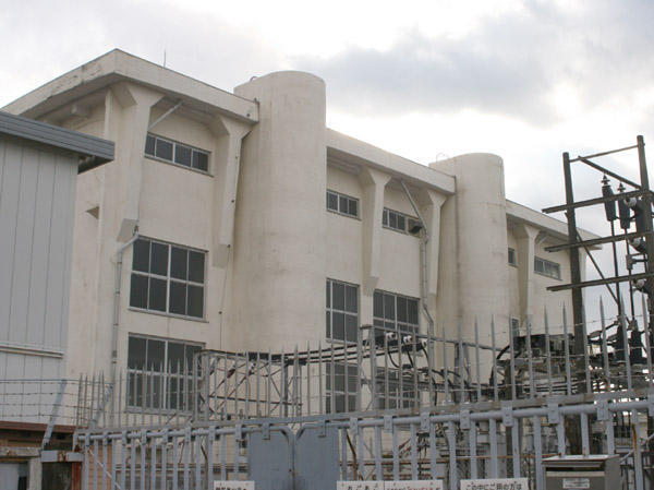 変電所の最も目立つ建物です。円柱構造が特徴的。