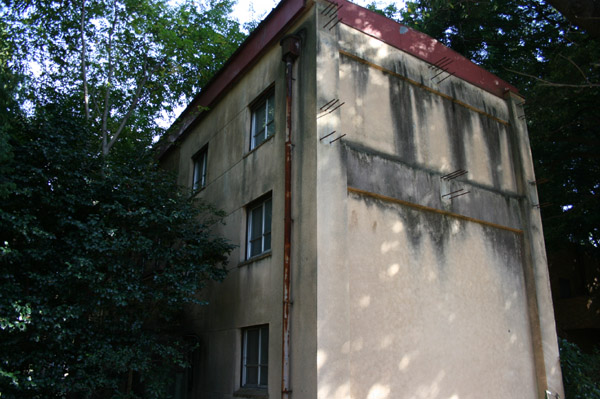 建物の反対側はタイル壁ではなくコンクリート。少しだけ新しい感じ。増設部分でしょうか。