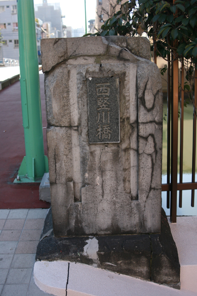親柱の一つ。灯りの支柱が折れたあとがあります。