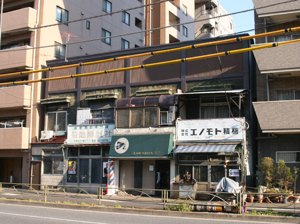 文京区大塚付近で見かけた4軒並びの店舗。上部は改装されているようですが、中間部分は銅板が見えています。