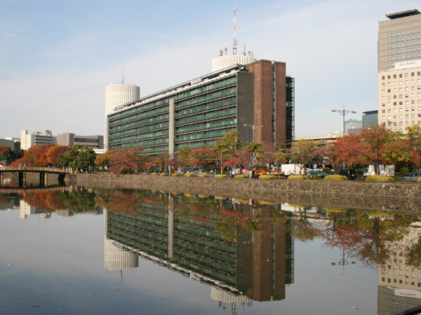 皇居北側の一ツ橋一丁目一番一号、竹橋の近くに立つ横長いビル。1966年竣工。毎日新聞の本社でもあります。